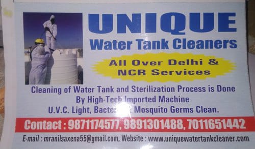 We Are Unique Water Tank Cleaners, based in Delhi and established in 2011.,Our organization has dependably trusted that clients start things out and in this way, the cleaning administrations of tanks, swimming pool and so forth., that we render are according to the say of the customers. We endeavor to finish the cleaning administrations inside the most limited conceivable time span so our customers don't confront water deficiency issue for long. In addition, there are different reasons like our entire straightforwardness in dealings,